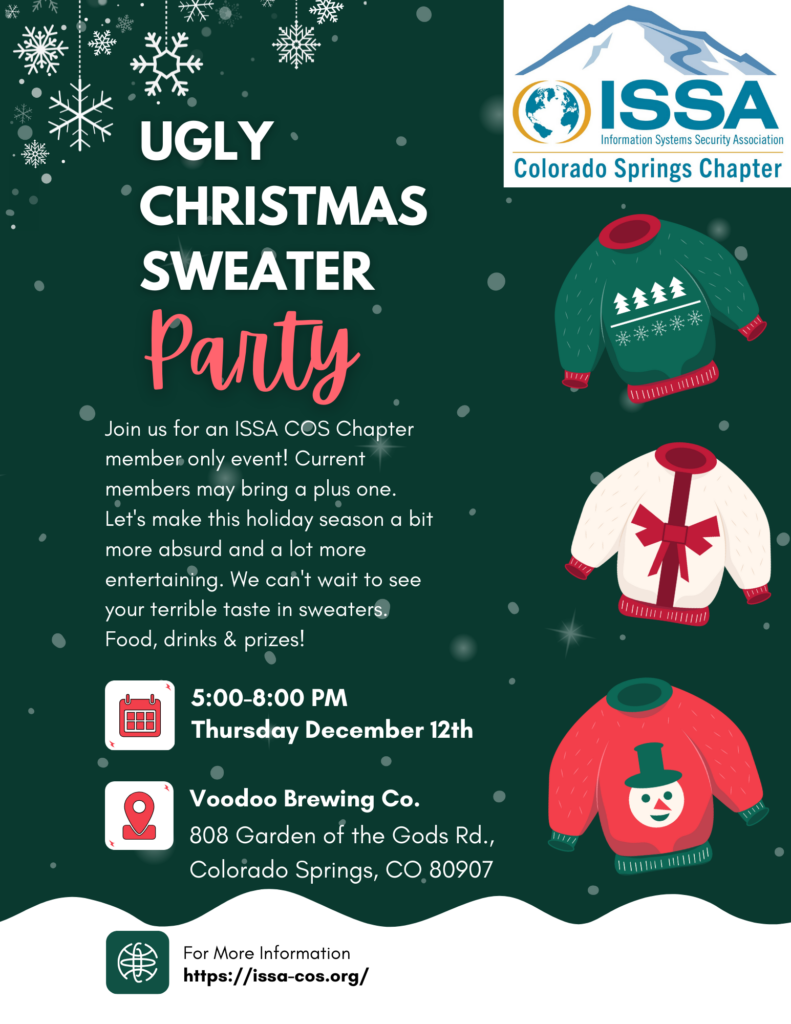 The Holiday Party is for ISSA-COS Members. Chapter members may bring up to two guests.